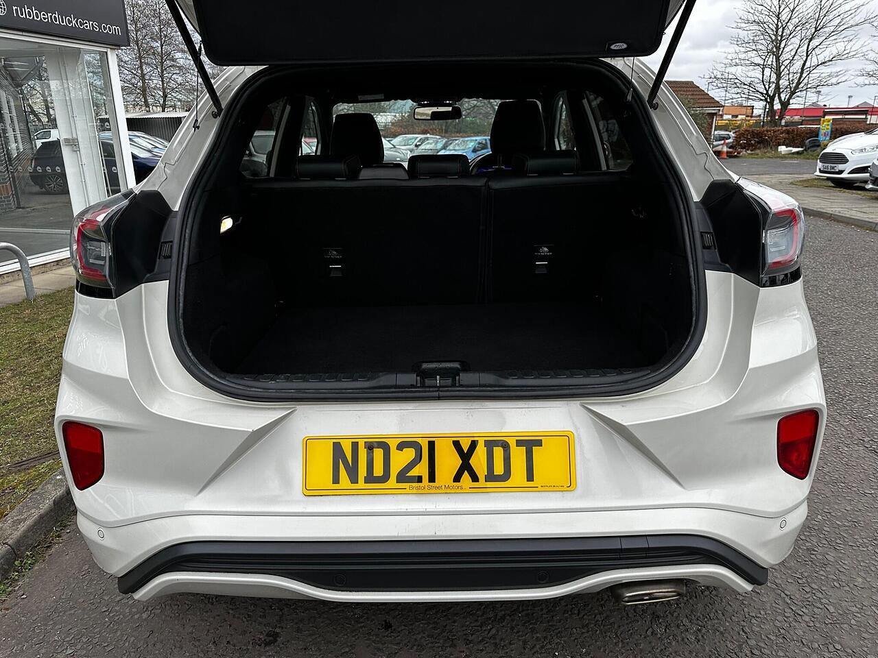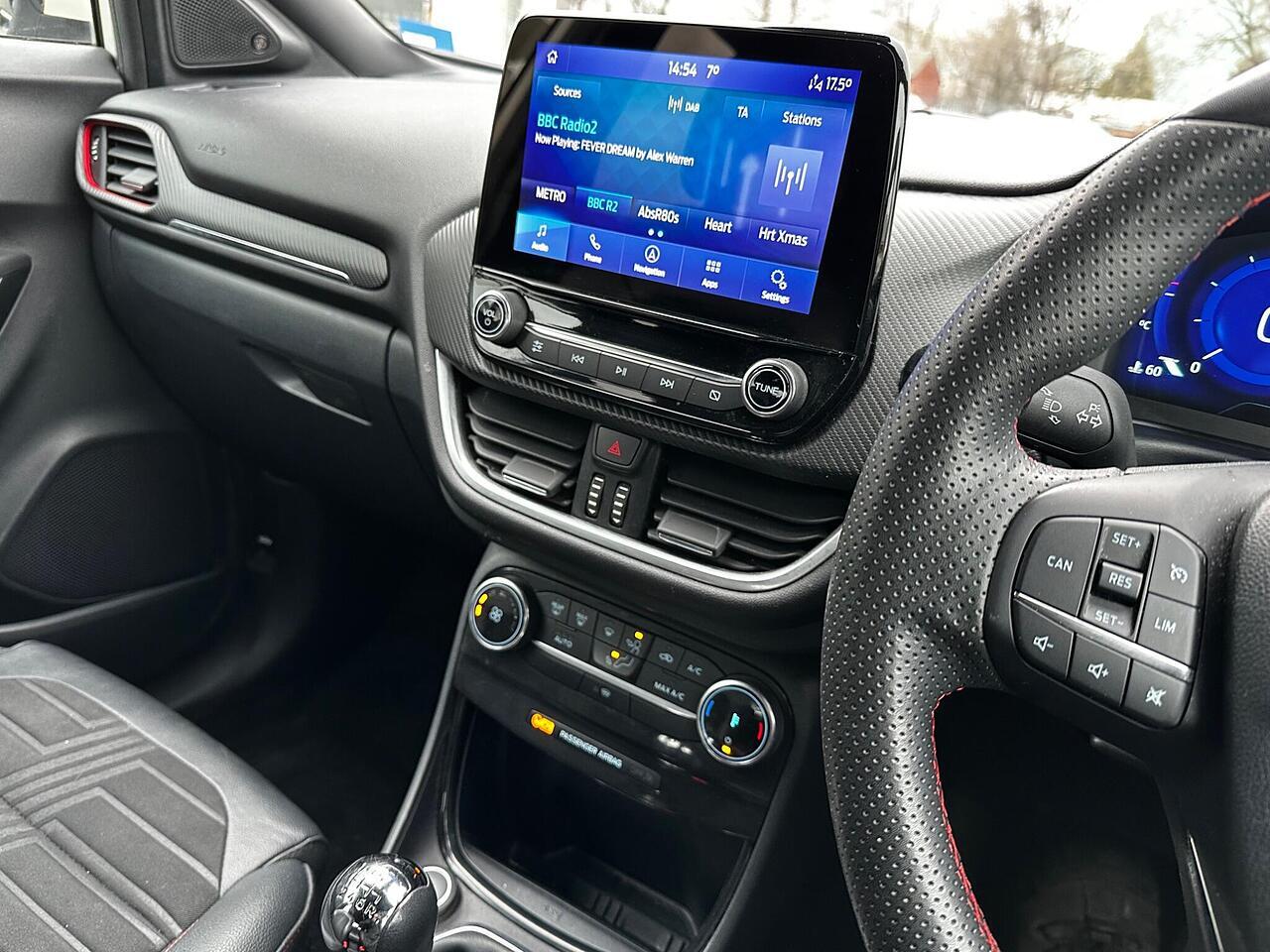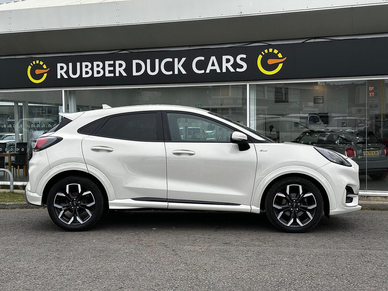 This 2021 Ford Puma ST-Line X offers an exceptional blend of style and technology, making it a standout choice. Powered by an efficient 1.0L Euro 6 petrol engine, this model is designed for modern driving. Inside, you'll find a host of premium features including rear parking sensors for easier manoeuvring, wireless charging to keep your devices powered up, and electronic air temperature control for a comfortable cabin environment. The B&O Premium Audio System, integrated with Ford SYNC 3 Navigation, provides an immersive sound experience and seamless connectivity with Android Auto and Apple CarPlay.