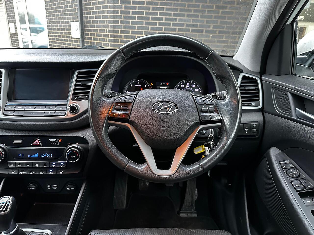This 2017 Hyundai TUCSON CRDi Sport Edition presents an exceptional opportunity with its remarkably low mileage of just 52,578 miles. This Euro 6 compliant 1.7 litre diesel SUV, finished in the Sport Edition trim, offers a refined driving experience. Inside, you'll find a host of convenient features designed for comfort and ease, including dual zone climate control with an ioniser, automatic headlights that activate with a dusk sensor, and front and rear parking sensors complete with parking assistance. For effortless navigation and entertainment, an 8 inch touchscreen satellite navigation system is included, featuring traffic messaging channel, a reversing camera, Mapcare, and Tom Tom LIVE services.