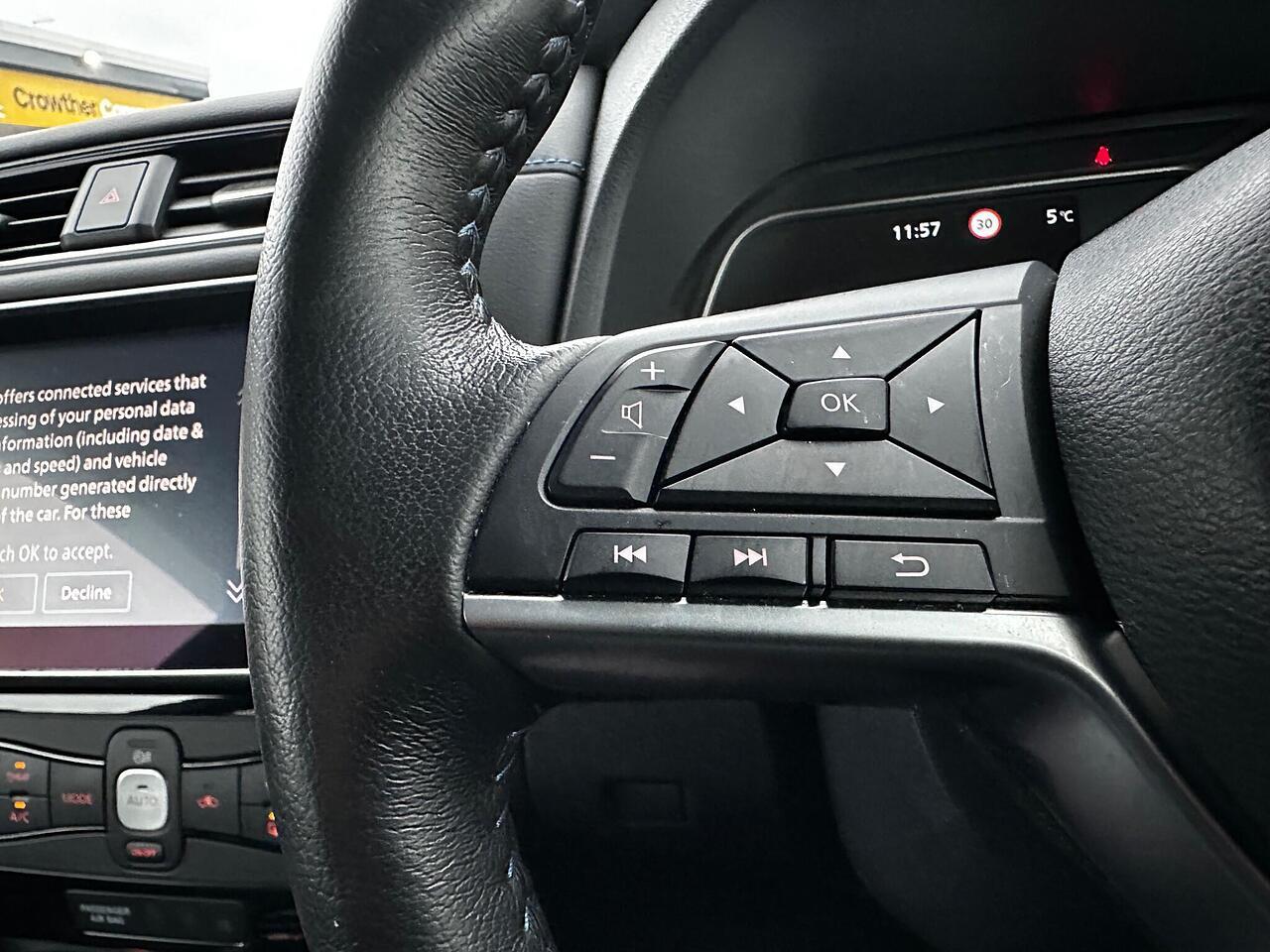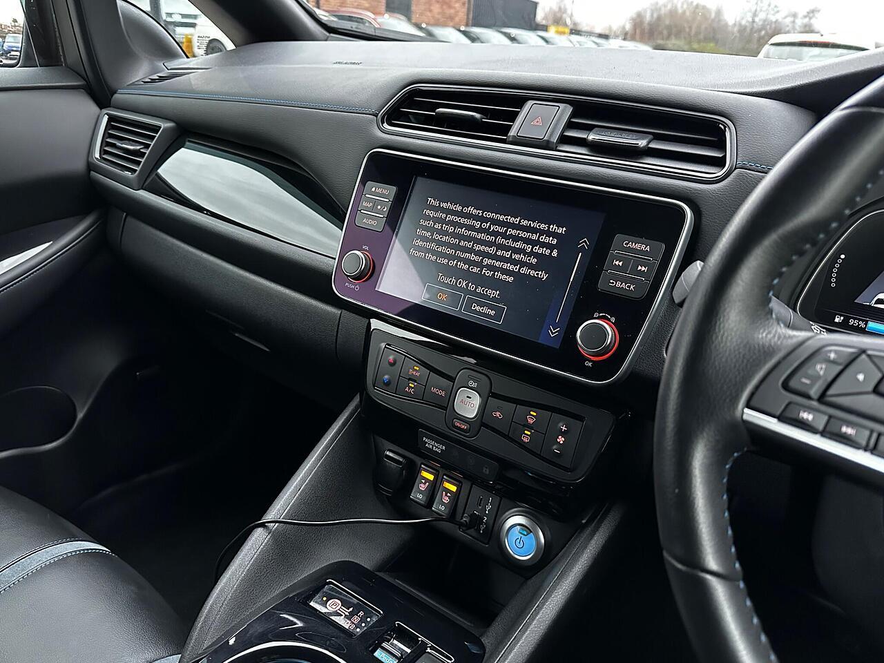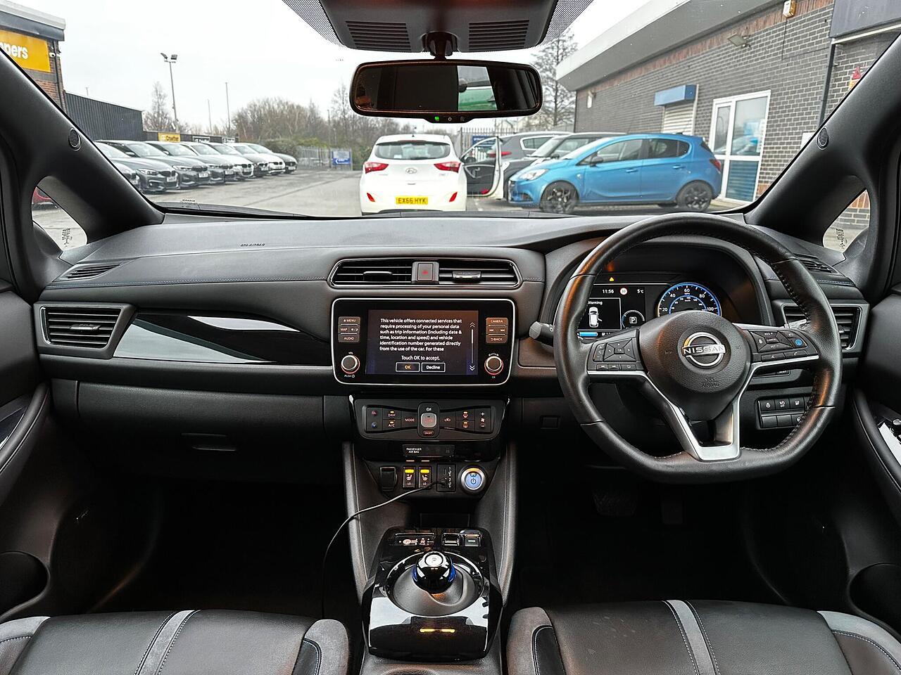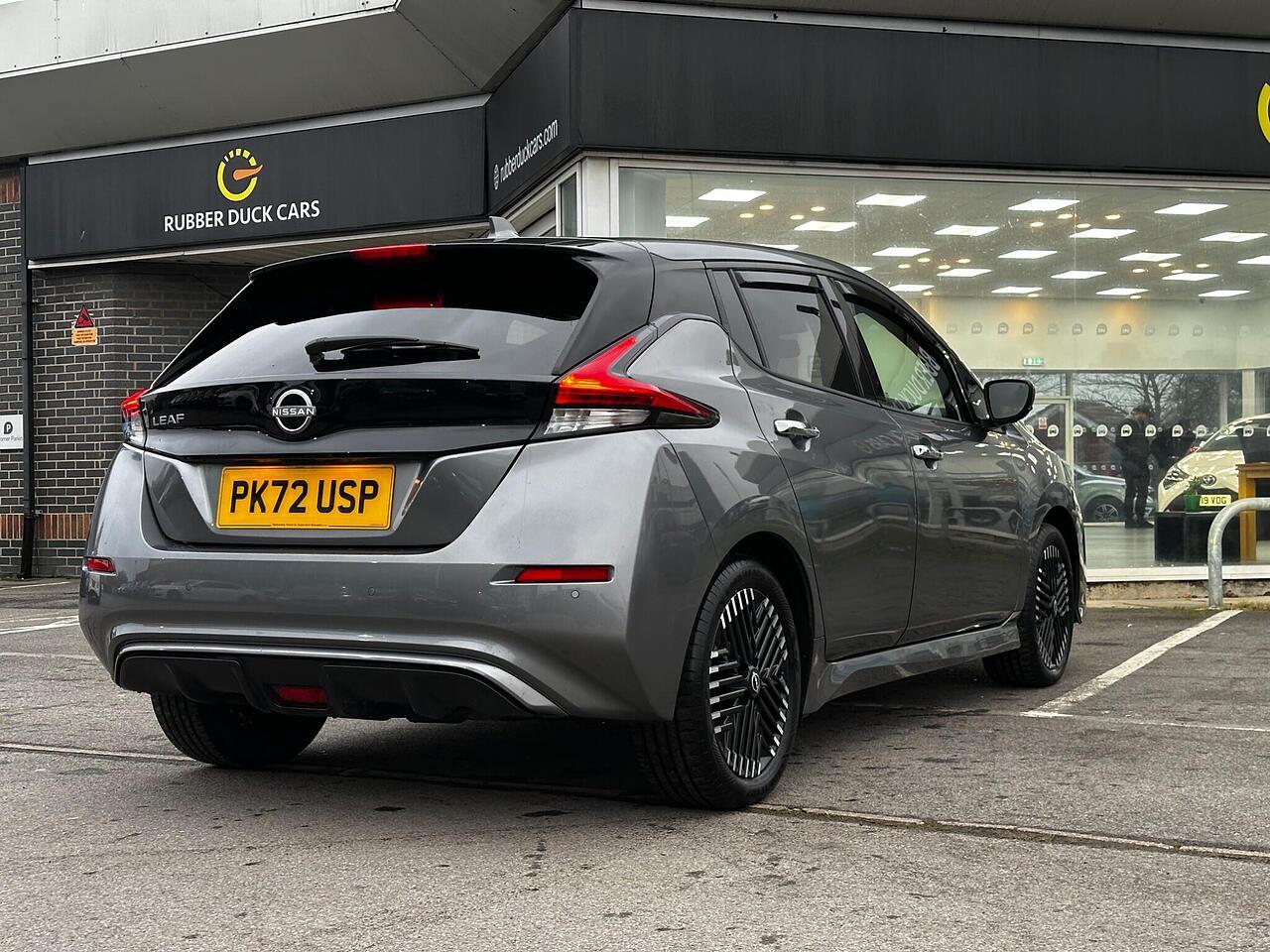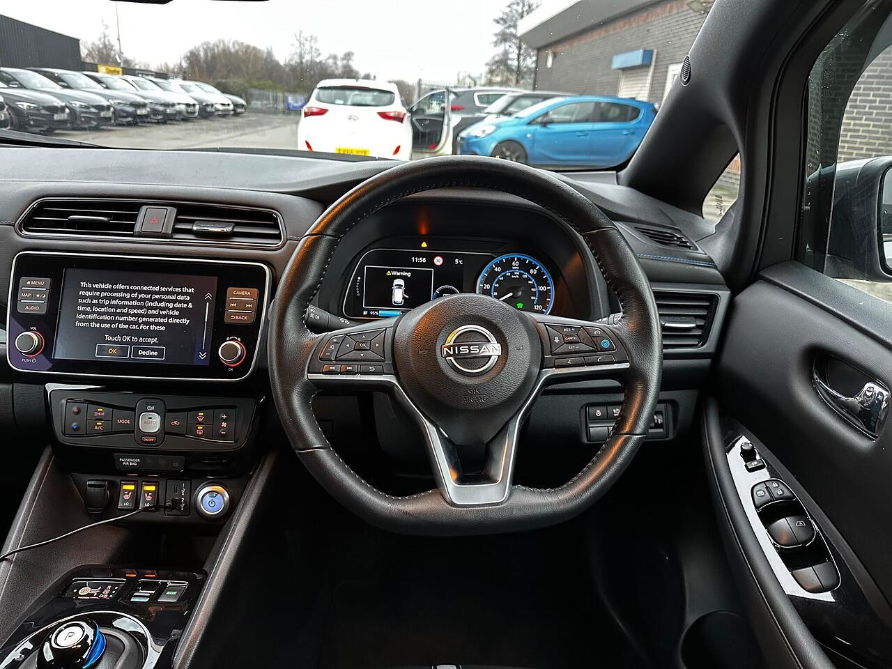 Discover this 2022 Nissan Leaf Tekna, an electric vehicle designed for modern driving. With a 41 kWh battery, it offers a maximum range of 168 miles when new, making it suitable for both daily commutes and longer journeys. Charging is convenient, taking approximately 7 hours and 30 minutes at home using a 7kW charger, and a rapid 1 hour and 20 minutes from empty to 80% at a public charging station. This Tekna model comes equipped with advanced technology, including Blind Spot Intervention, Android Auto and Apple CarPlay for seamless smartphone integration, and a comprehensive Tech Pack featuring 360 degree, front, and rear parking assistance.