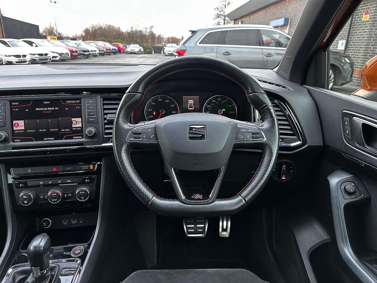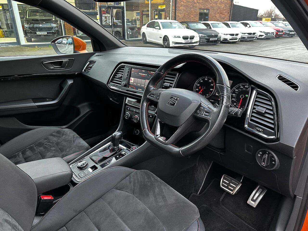 This 2017 SEAT Ateca TSI FR boasts exceptionally low mileage for its age, having covered just 55,291 miles. This well maintained example features a powerful 2.0 litre petrol engine paired with a four wheel drive system, ensuring confident handling in all conditions. As a Euro 6 compliant vehicle, it meets modern emissions standards. The FR trim level enhances its appeal with a sporty design and a host of practical features, including full LED headlights for superior visibility, rear parking sensors and a rear view camera to aid manoeuvring, and dual zone climate control to keep all occupants comfortable. Connectivity is seamless thanks to Full Link, which integrates Android Auto and Apple CarPlay, allowing you to access your smartphone apps safely.