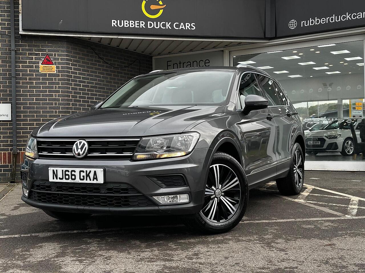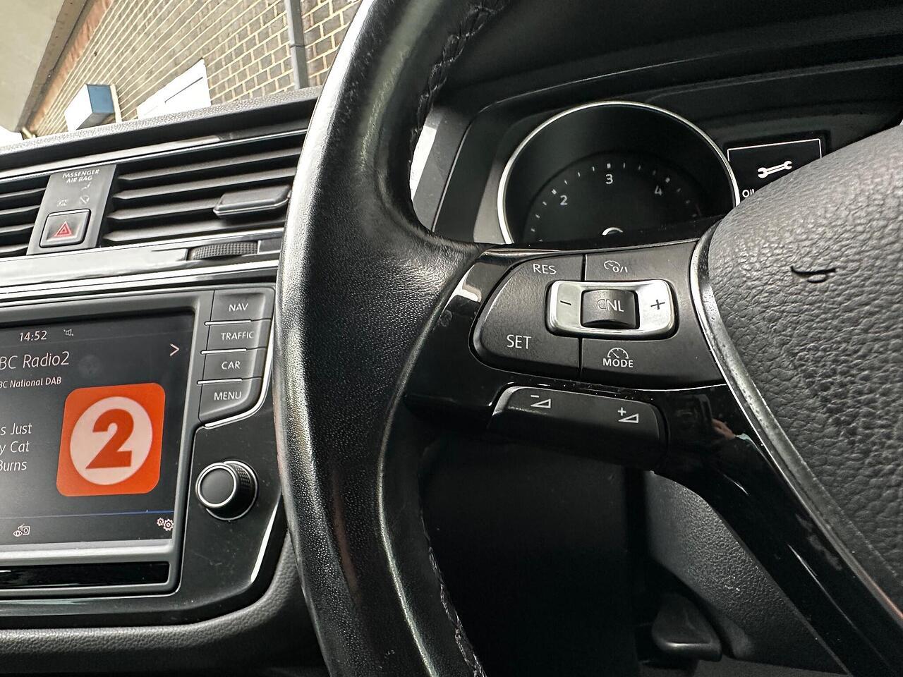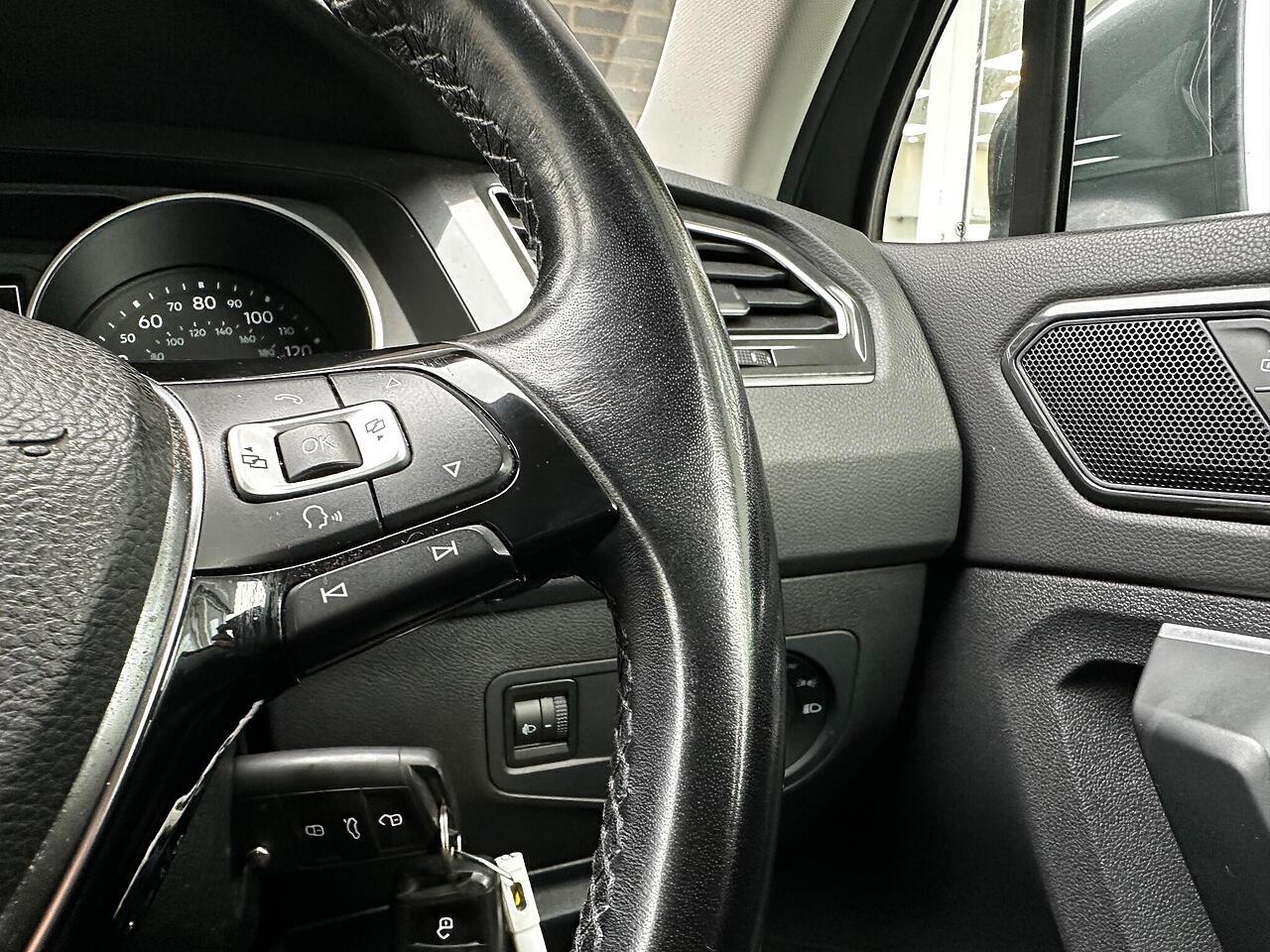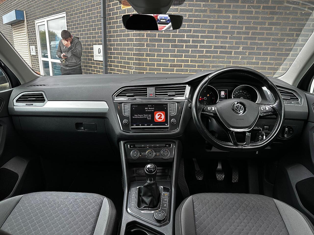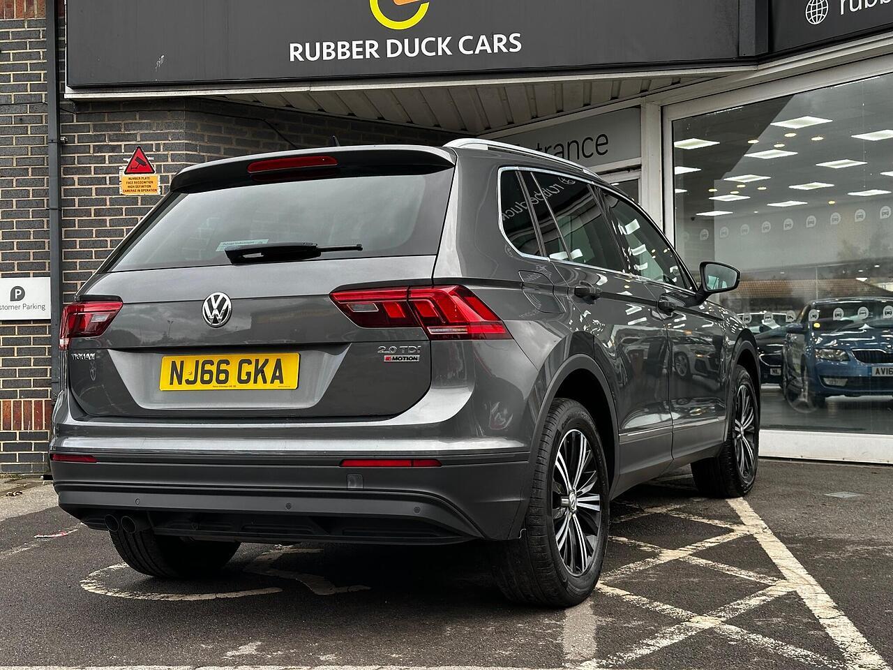 This 2016 Volkswagen Tiguan TDI SE Navigation is a superb example, having been owned by just one careful keeper from new. It boasts a robust 2.0 litre diesel engine paired with four wheel drive, ensuring capable performance in all conditions. As a Euro 6 compliant vehicle, it meets modern emissions standards. This SE Navigation trim level comes equipped with convenient features such as Bluetooth phone connectivity, automatic headlamp activation with separate daytime running lights and manual coming home function, and front and rear parking sensors to aid manoeuvrability. The climate control system ensures a comfortable cabin temperature for all occupants.