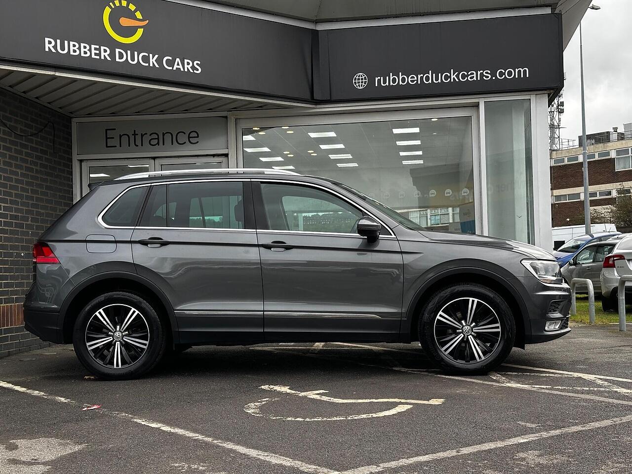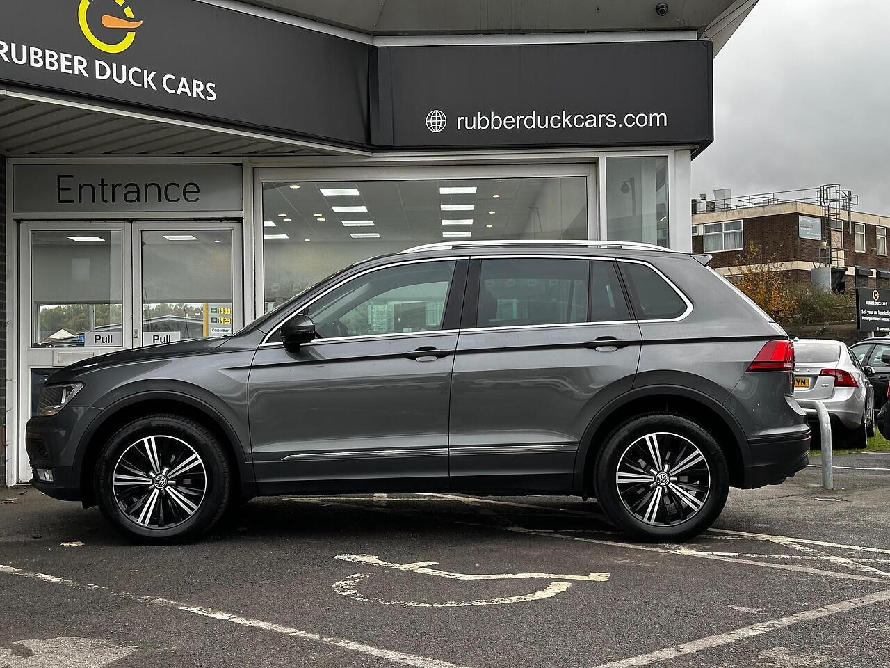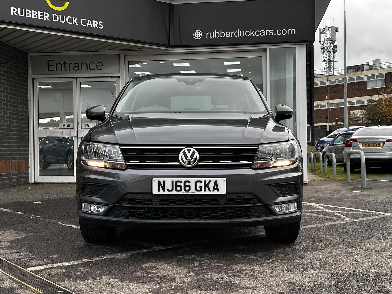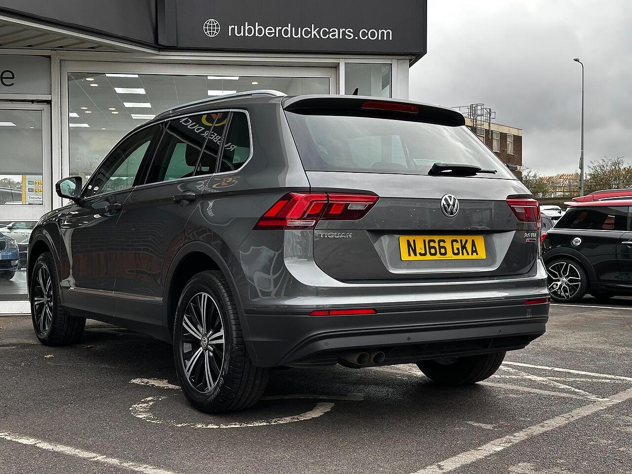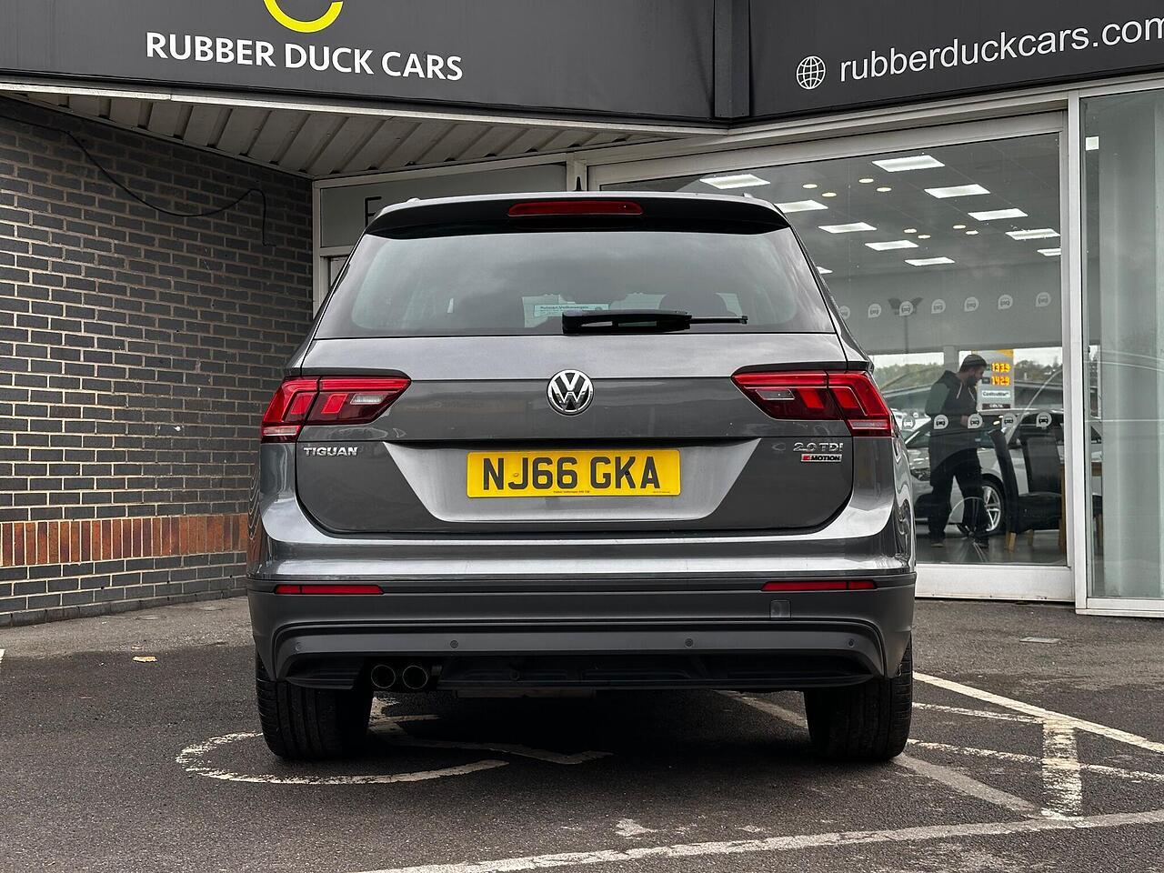 This 2016 Volkswagen Tiguan TDI SE Navigation is a superb example, having been owned by just one careful keeper from new. It boasts a robust 2.0 litre diesel engine paired with four wheel drive, ensuring capable performance in all conditions. As a Euro 6 compliant vehicle, it meets modern emissions standards. This SE Navigation trim level comes equipped with convenient features such as Bluetooth phone connectivity, automatic headlamp activation with separate daytime running lights and manual coming home function, and front and rear parking sensors to aid manoeuvrability. The climate control system ensures a comfortable cabin temperature for all occupants.